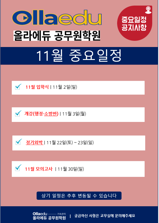 올라에듀공무원학원 2025년 11월 중요일정